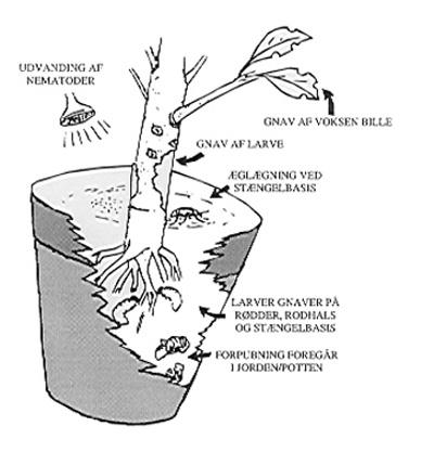 Øresnudebillens livscyklus og behandlingstidspunkter:
